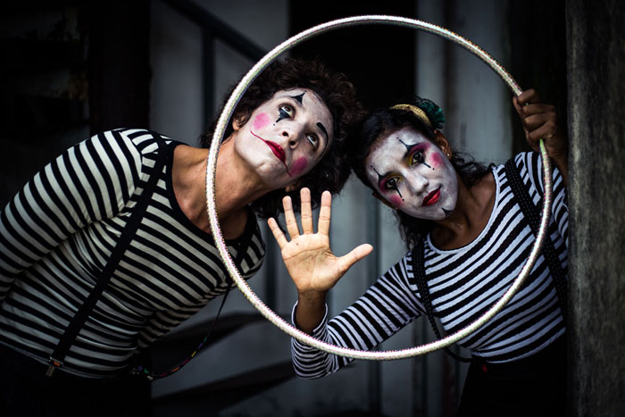 Dressed as a hybrid of clowns and French mime artist, the hoop performers have put their brilliant hula hoop skills into a captivating mini hoop act that is a real joy to watch. You will be hoopnotised by the amazing ma manipulation of the mini hoops and perfectly choreographed body movements.
