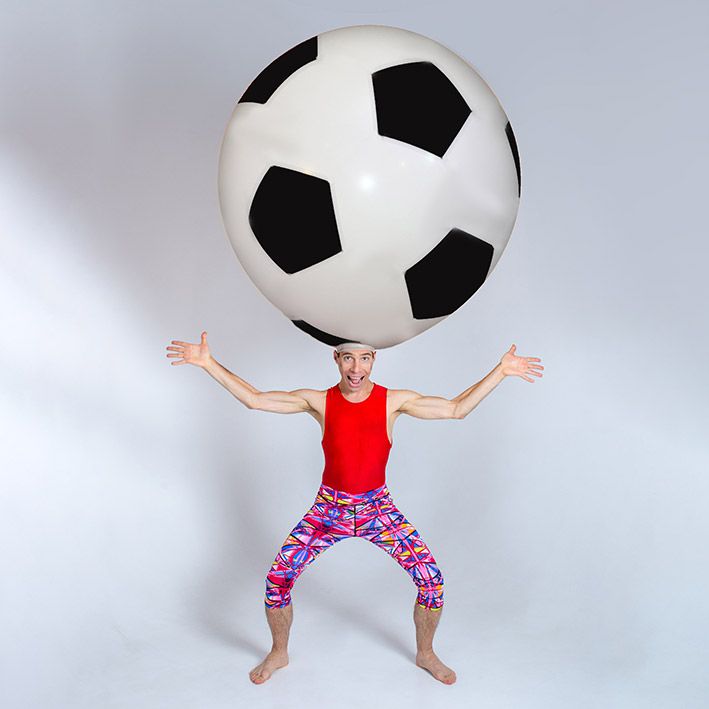 Comedy is a form of entertainment that has always transcended cultural barriers and our fantastically original comedy balloon act performance is certain to entertain audiences of all ages and nationalities. Combining impressive acrobatic feats and hilarious slapstick comedy our giant soccer ball character will have your guests in hysterics. As he deftly moves in and out of a giant balloon, striking funny poses and performing acrobatics, all to a high-energy soundtrack, our funny entertainer will captivate his audience.