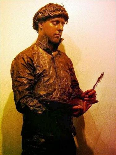Our fantastic human statue Javi, based in Valencia, is sure to be a big hit at your event with guests young and old as he strikes a pose as a convincing effigy of a classic writer, pen in hand and ready to write his next literary masterpiece.