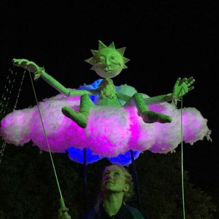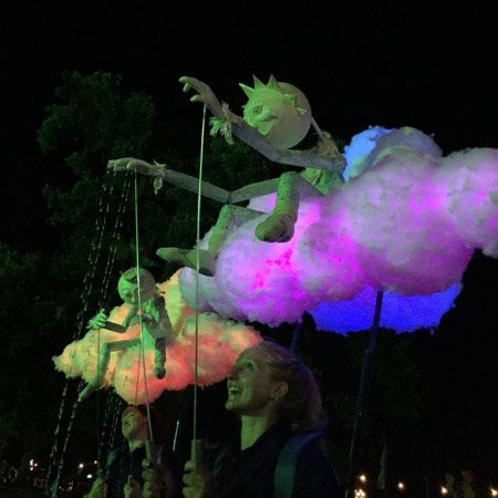 Steered by talented puppeteers, our hand-crafted puppets dance over the heads of viewers, interacting with both young and old audiences