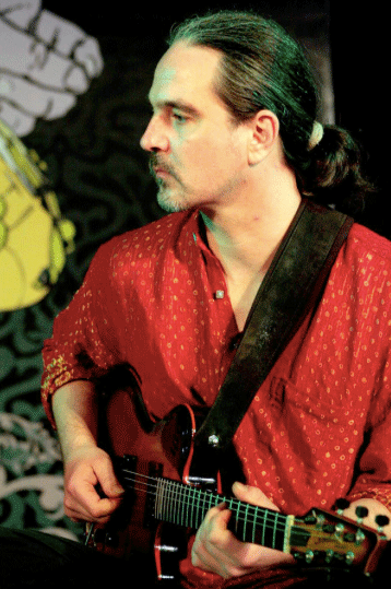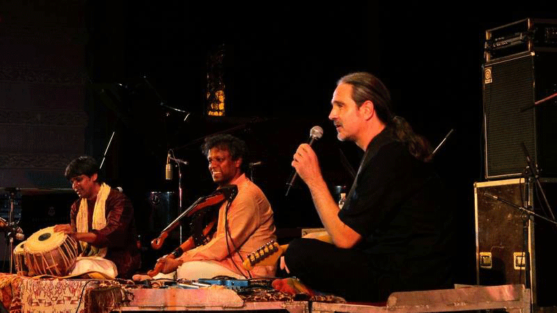 Formed in 1999, the group tours as a quartet, with Matthias on guitar, Radhakrishna on the rare and unique, stereophonic double violin, and percussionists Udai and Yoga, from North and South India, respectively.