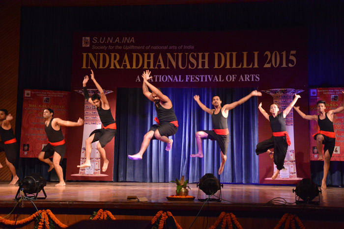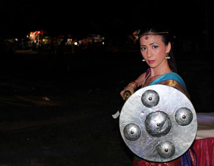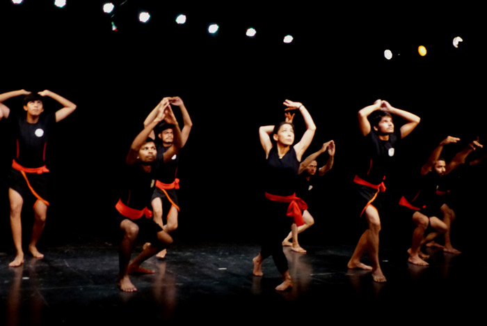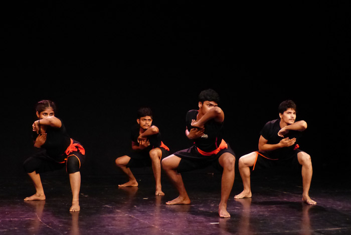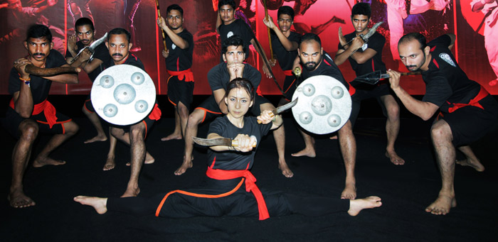 Shows and demonstrations combine elements of fight sequences and weaponry with flexible acrobatic movements and Kalaripayattu dance steps