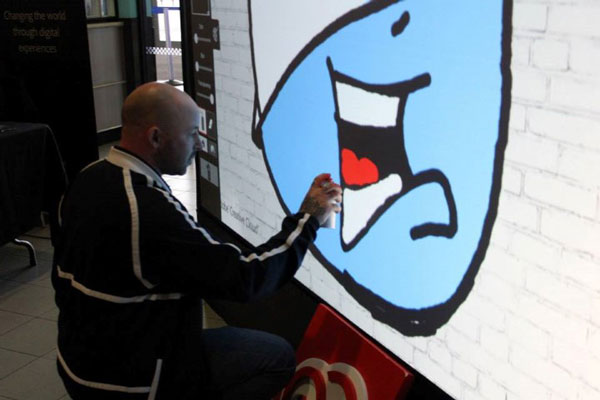 For events with limited space a smaller version of the wall is available and photo booth mode can be activated if you’d like to add an extra element to the interactive and combine live photos with live editing. The addition of a live demonstration by a professional graffiti artist also adds a touch of excitement to this interactive act.