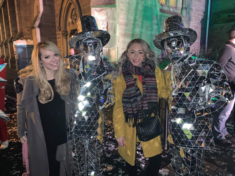 Mesmerising sparkly men dressed in top hats and suits made entirely of fragments of mirror