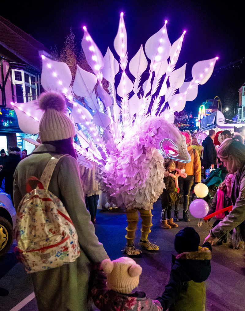 Able to perform 2x45 minute or 3x30 minute sets per day, our versatile walkabout birds are the ideal entertainment option for festivals, parades, children’s events and Christmas light switch ons. A customisable act, our Interactive Walk Around Birds programme the colours of their LEDs to suit your event theme. To find out more about booking these truly endearing walk around characters for your special occasion, please speak to our team at Scarlett Entertainment UK today.