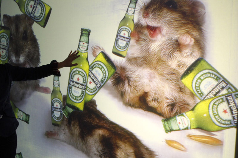 A fun and futuristic option for the world of advertising and marketing that will increase sales and create a fun filled atmosphere for guests and on lookers to feel carefree for a few seconds. Our interactive wall display is fully customisable and can feature any image or video of your liking, and is the perfect set piece for a number of different events. Our futuristic entertainment experience is filled with incredible video projection and image projection, leaving guests with an unforgettable digital experience they will not soon forget. Creating a light hearted mood surrounded by advertisements will keep guests talking.