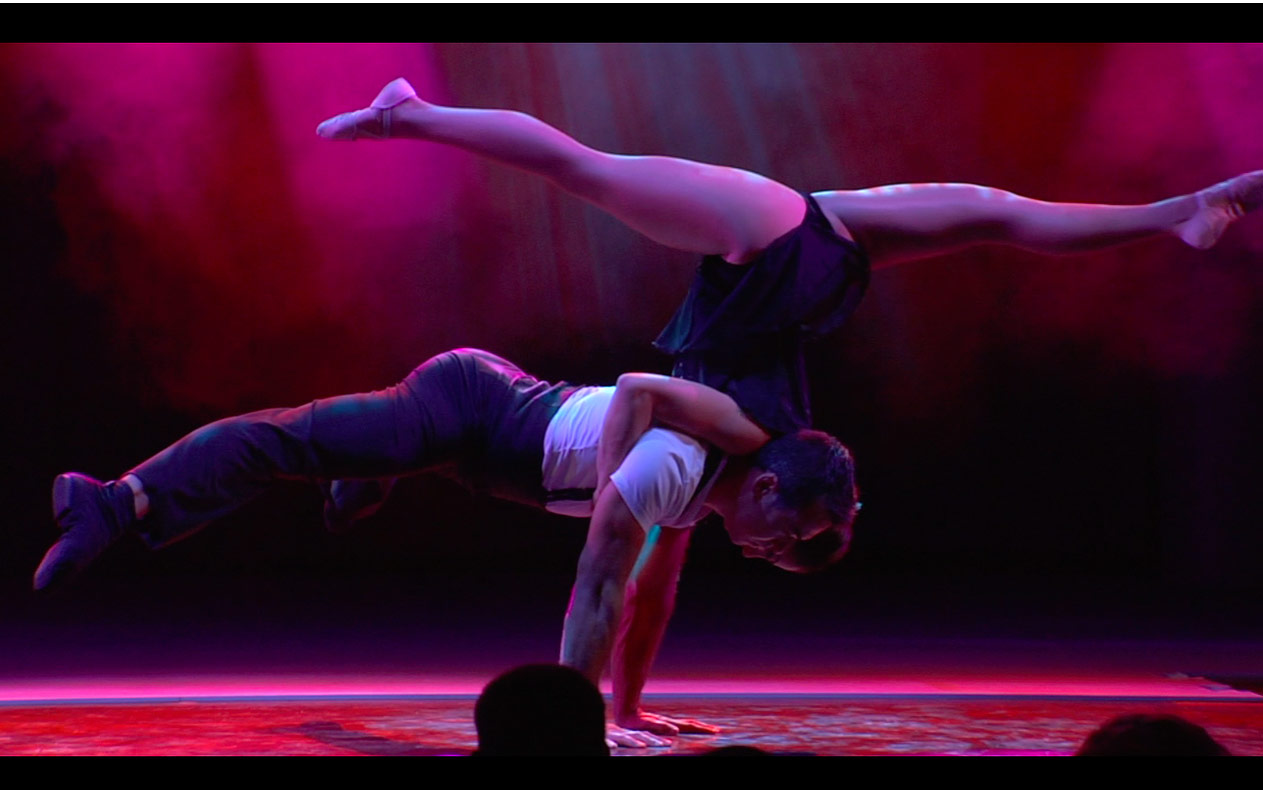 Together, the pair perform awe-inspiring, technically challenging, acrobatic moves and balances together including, Hand-to-Hand, Duo Straps, floor acrobatics, dance and Juggling skills. It proves to be a show that will not disappoint!