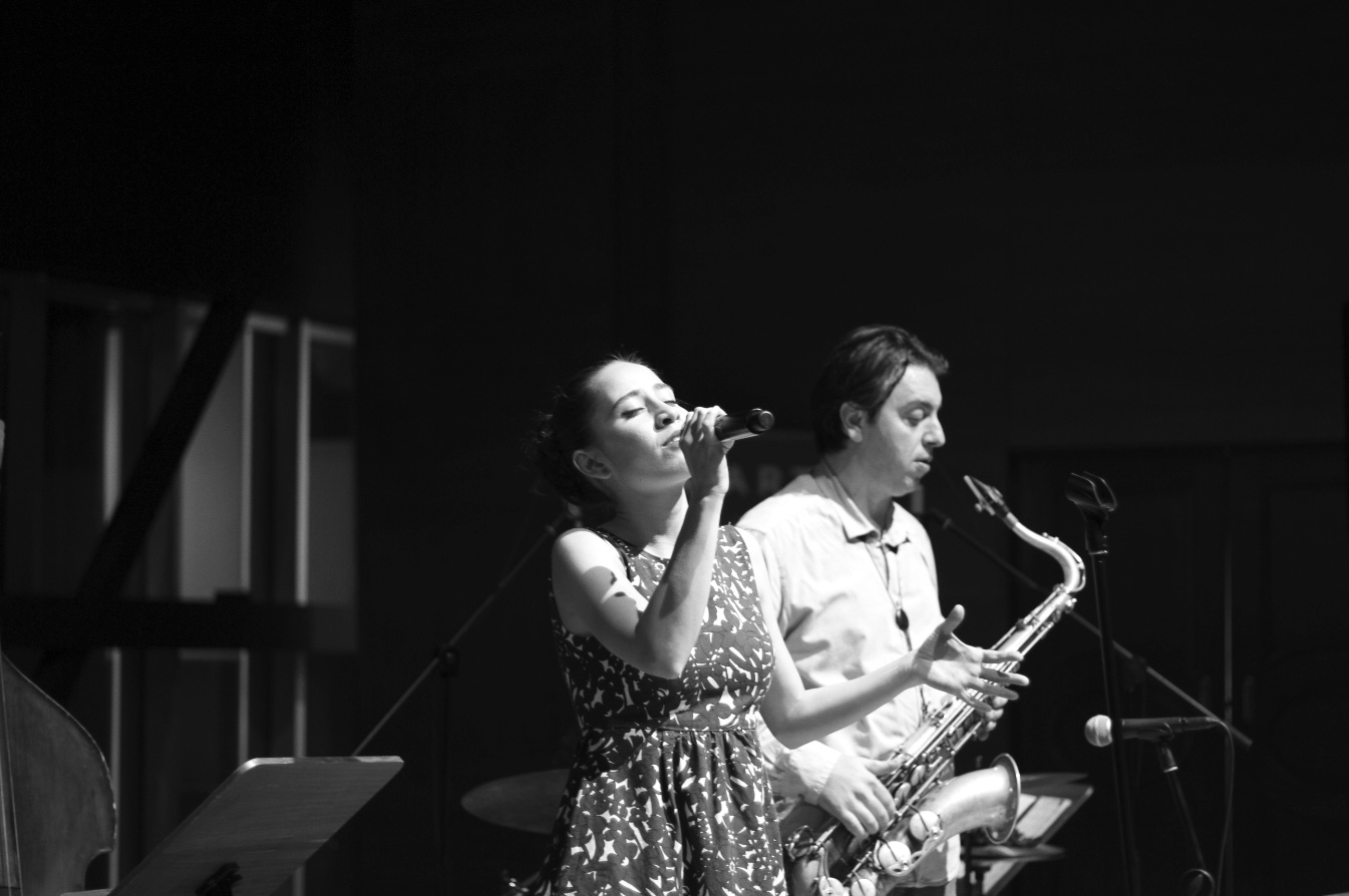 Jazz trio includes female vocals, piano and saxophone