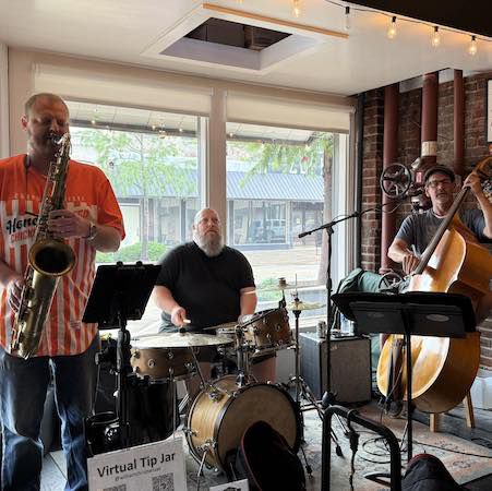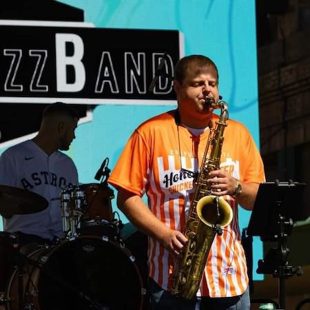 The core trio features vocals, saxophone, bass, and drums, with the option to expand into a full band for a richer sound