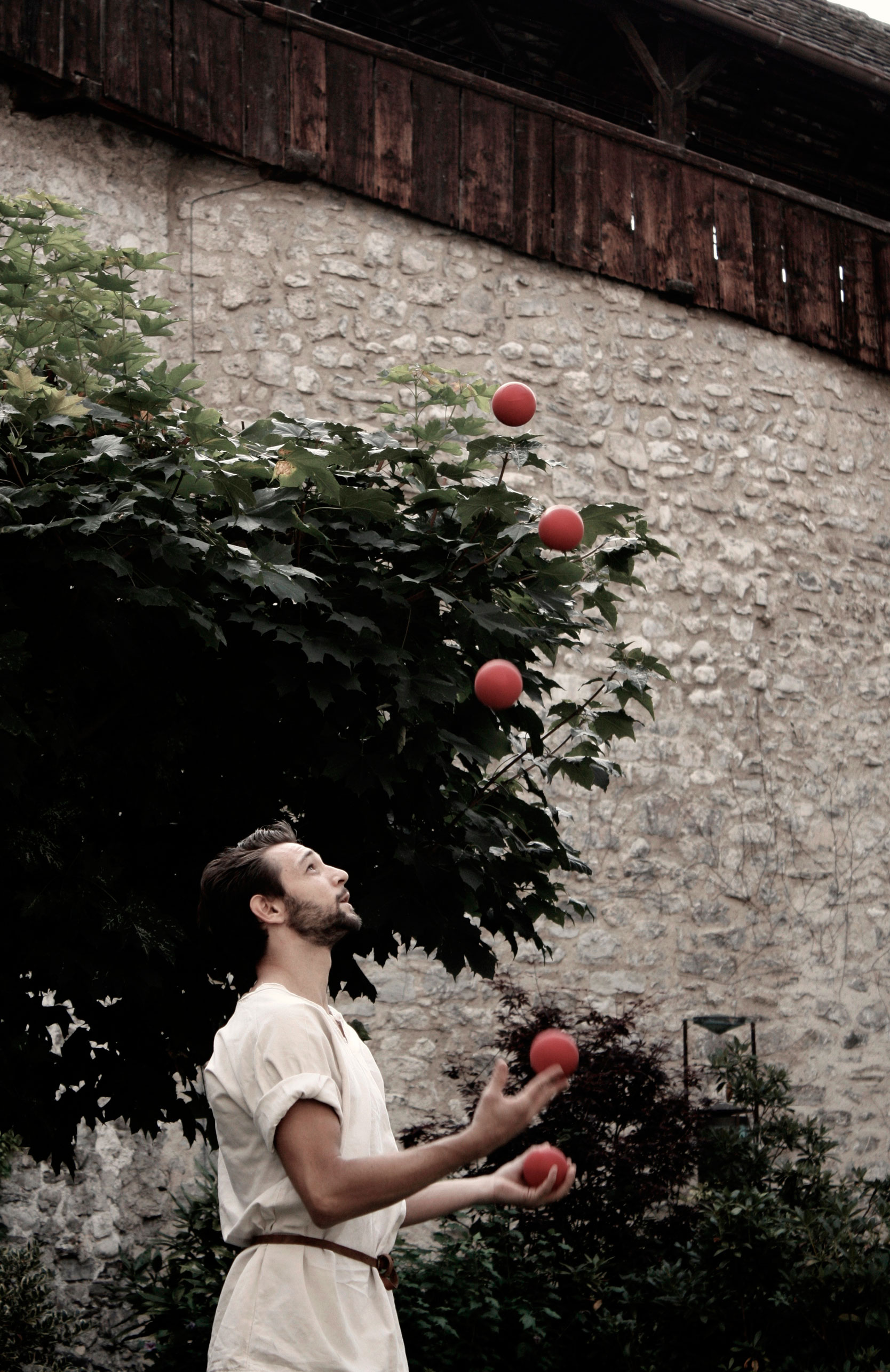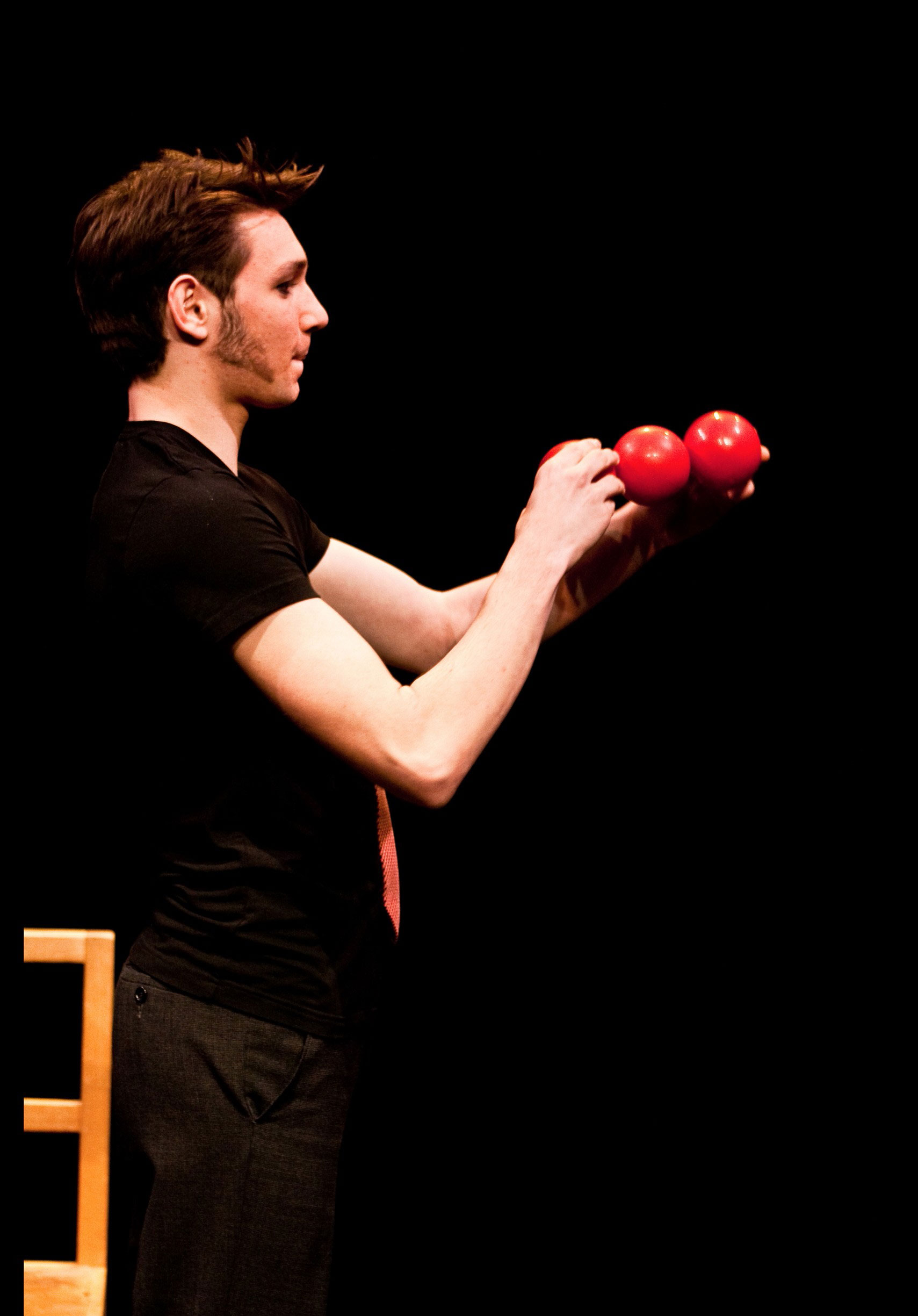 Experienced in toss juggling, mime, theatre, clowning & contact juggling