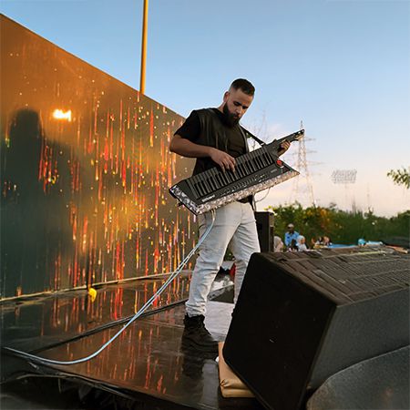 This keytar player's musical style blends Egyptian spirit with international melodies, creating dynamic and memorable live music experiences