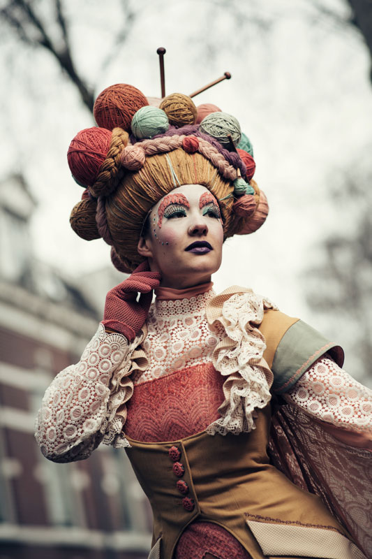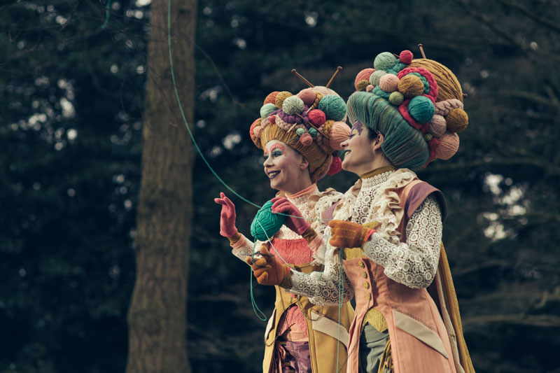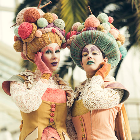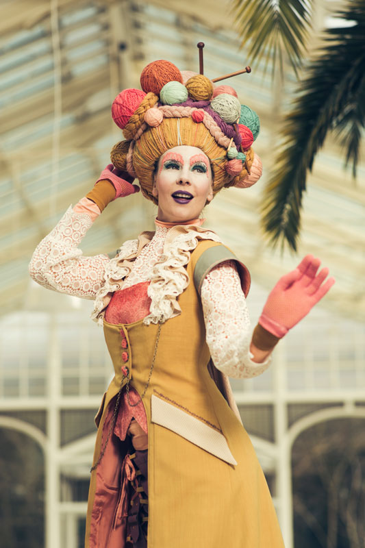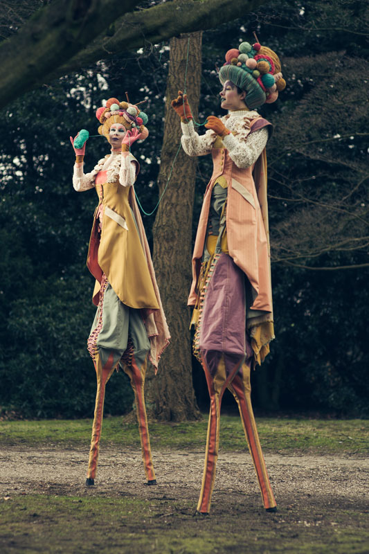 A highly unique concept, our Knitted Ladies Stilt Act wears bespoke designed outfits and headdresses inspired by the creative art of knitting and embroidery.