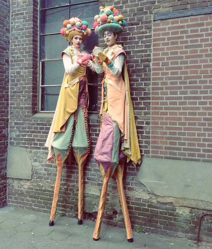 With a whimsical style and intricately decorated costumes, this Knitted Ladies Stilt Act is guaranteed to charm audiences of both children and adults alike.