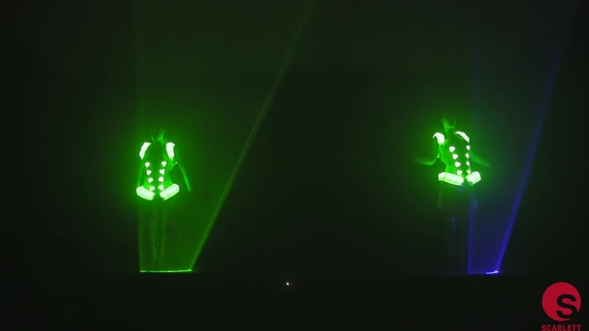 Book our Vegas laser act for corporate events and product launches. It is easily customised as our female laser performer can tailor her show to incorporate logos and branding, she can also create a performance that has been developed to work with a specific piece of music. Able to fit in with any theme, she has a range of LED costumes that come with a variety of options and her light vest can be worn over any costume.