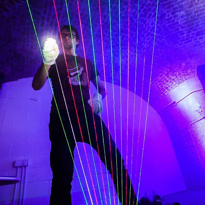 Based in Scotland, he is available for events across the UK where his laser harp creates a cool visual effect suitable for low-light events