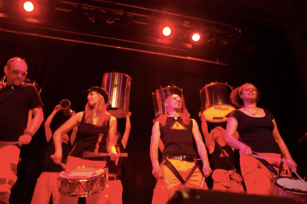 The group perform an explosive blend of power percussion and Brazilian rhythms with an intoxicating repertoire of samba reggae, funk, ska, salsa, drum & bass - arranged in an explosive stage show of rhythm, movement and lots of fun!