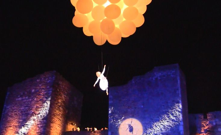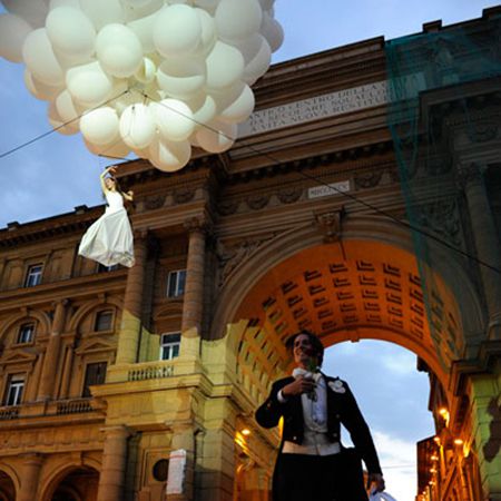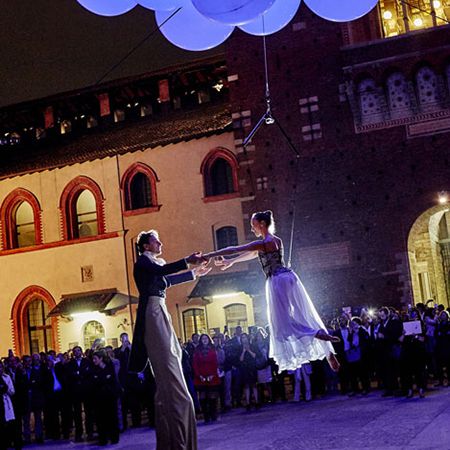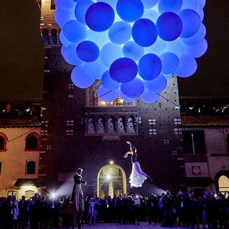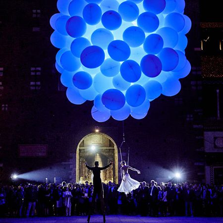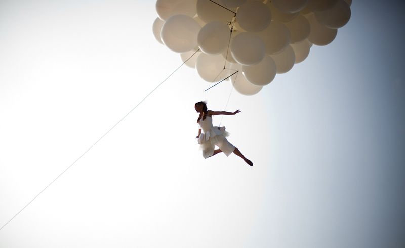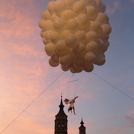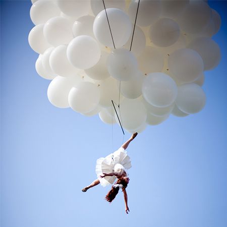 Tapping into the wanderlust of crowds young and old, this act fulfils everybody's collective daydream of floating away to magical places unknown. Captivating the imagination, the simple but visually spectacular act uses the upward thrust of helium filled balloons to levitate a beautiful acrobat amongst the clouds.