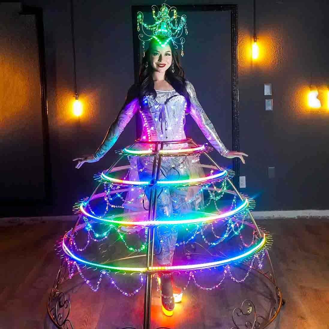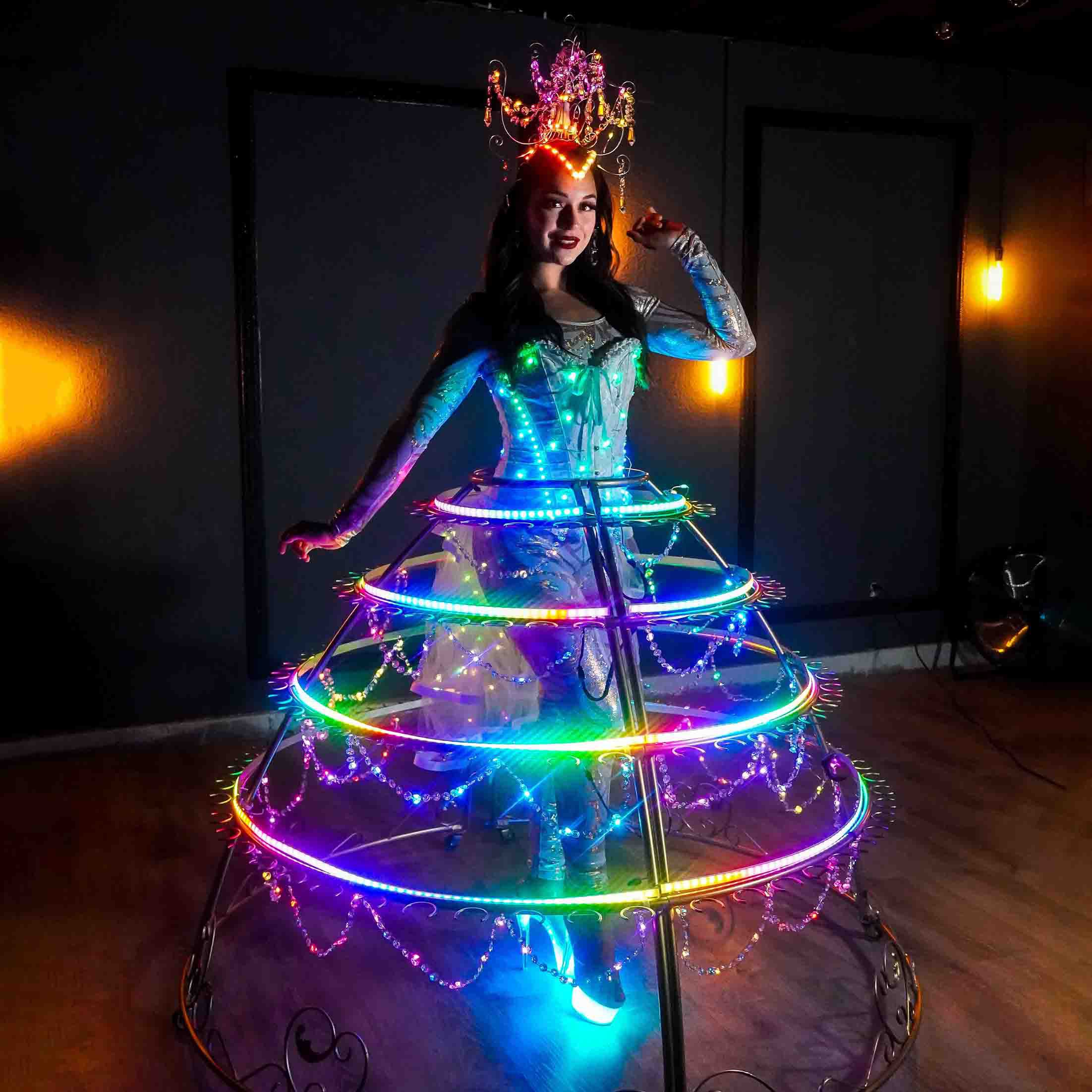 Our strolling LED dresses roam about venues, interacting with guests and ensuring their drinks are kept refilled