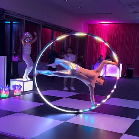 The dynamic nature of the LED Cyr Wheel performance engages and captivates audiences, providing a visual display that keeps guests entertained