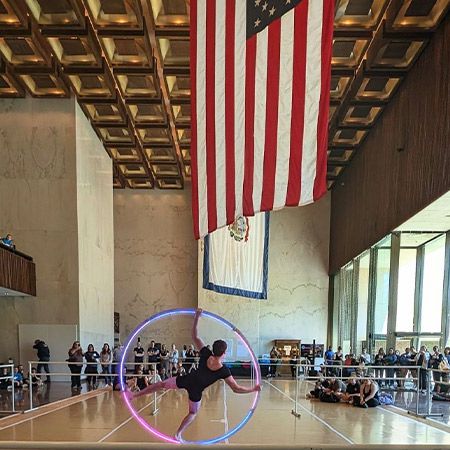 Based in Michigan, the performer brings years of expertise and skill in manipulating the Cyr Wheel, ensuring a professional and polished show