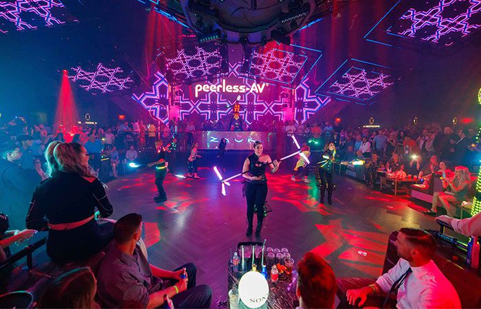 This highly customisable act can be tailored to your event, using a range of LED props and even featuring your logo or a special message