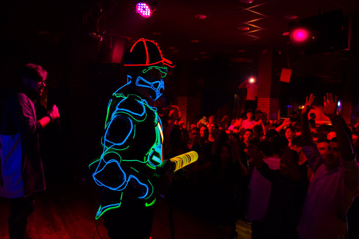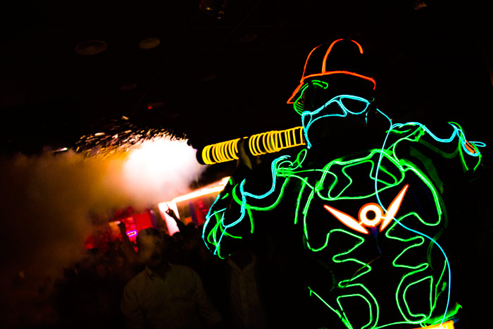 This LED drummer knows exactly how to make an entrance. He takes to the stage launching his CO2 cannon into the crowds to get everyone psyched, this can be repeated throughout the event should the client want. This is followed by his exciting LED drum show with pumping dance music and club-ready tunes that will have everyone dancing. The unusual percussionist creates a visual live show that leaves guests with an experience they won’t forget.