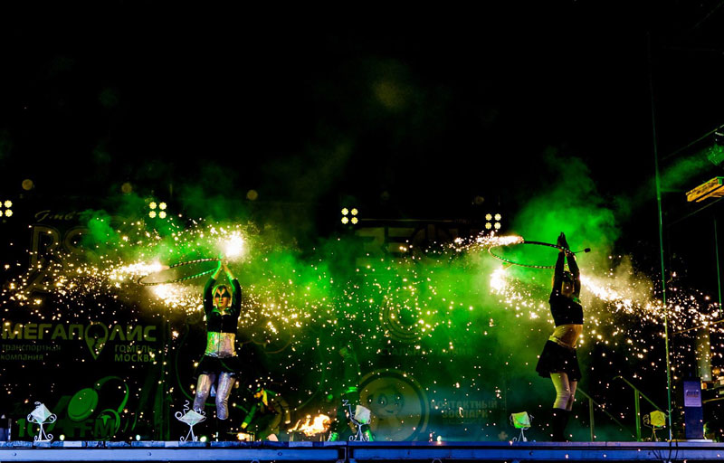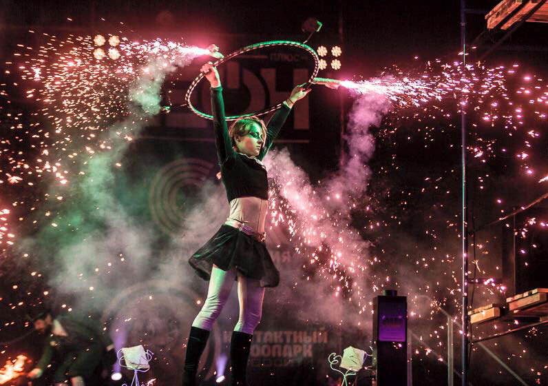 Having illuminated stages all over Europe, our dance troupe has also brightened up parties and events in Azerbaijan and the Maldives. Among their previous clients, our dancers can name renowned international brands such as Coca-Cola, Nestle and MTC. These LED fire dancers have also participated in numerous festivals including the Dobrye Ogni in Ufa (Russia) where they won first place in the competition.