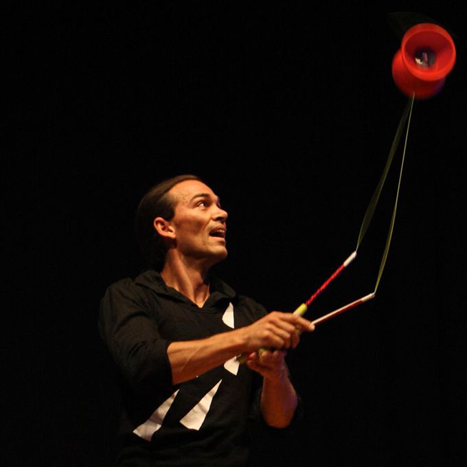 A unique fusion of diabolo and juggling, blending spinning patterns with expert use of balls, rings, clubs, and more