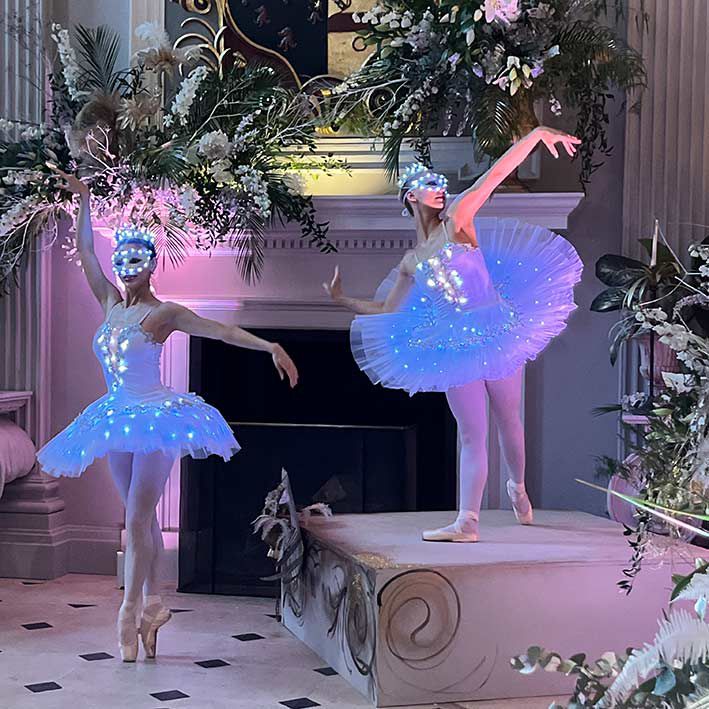 Hire stunning and skilful ballerinas in LED tutus and masks for an elegant masquerade-themed entertainment option
