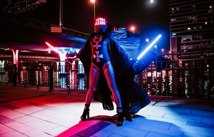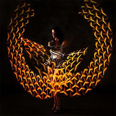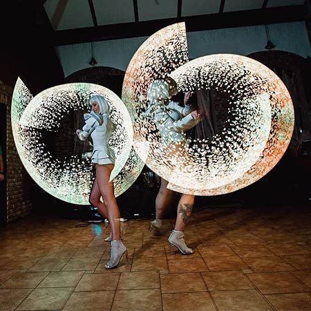 In addition, if you’re looking to provide your event with a modern and futuristic touch, this LED poi show can be the ideal entertainment option for you. These versatile female dancers can wear the costume that best adjusts to your preferences. As you can see in the pictures above, they offer magnificent futuristic outfits for different occasions. Their white dresses and their black and golden costume can be the ideal choice for any private and luxurious party.