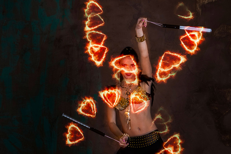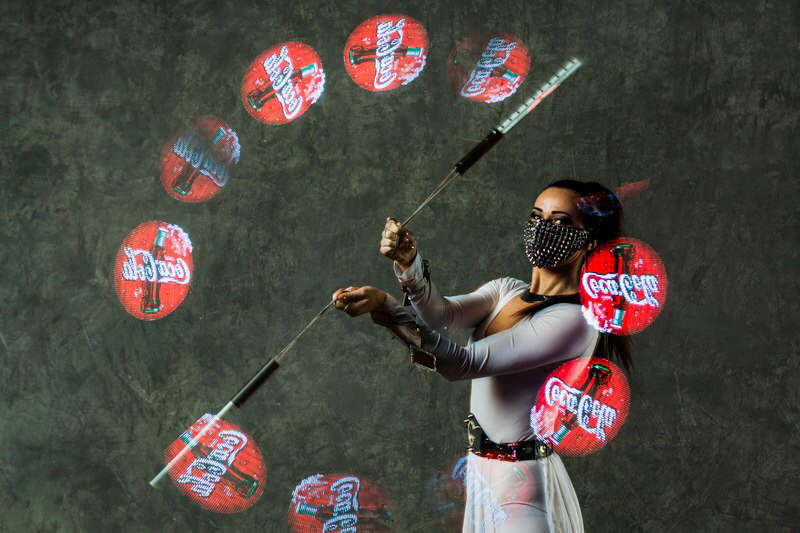 By using the latest LED poi technology in the market, our expert poi spinners can display any logo, image, picture or form, which makes of their act a perfect and innovative way to promote your business.