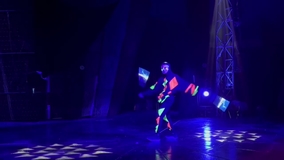 Mixing modern LED technology with classic circus arts, this LED poi performer creates a vivid, high-impact show with multicoloured spinning visuals