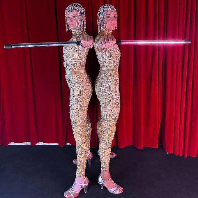 Our walkabout performers perfectly combine contemporary LED performance styles with a vintage aesthetic for a dynamic visual show