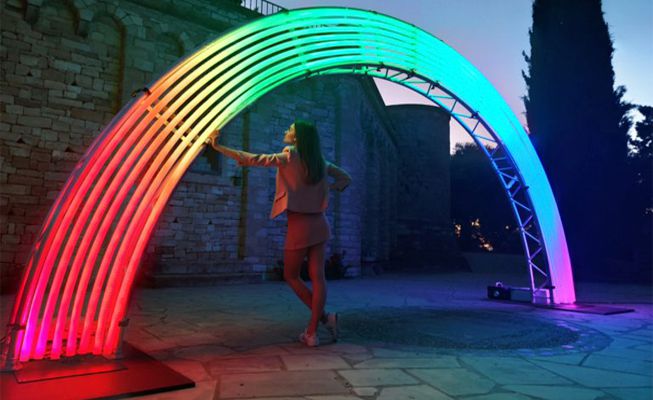 Our Catalonian-based team has built an LED Rainbow Installation that makes the perfect photo op for a fun, light-hearted event! Guests will love it!