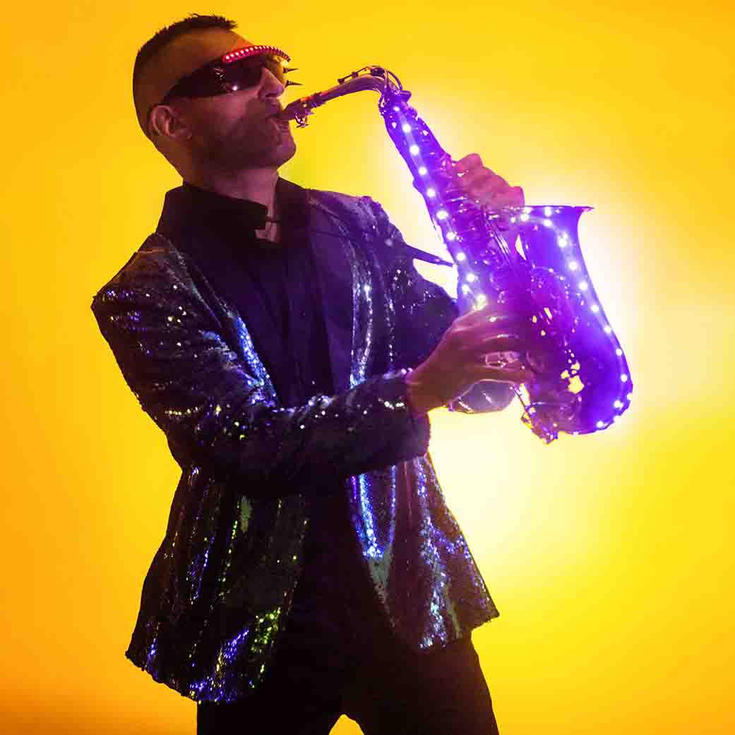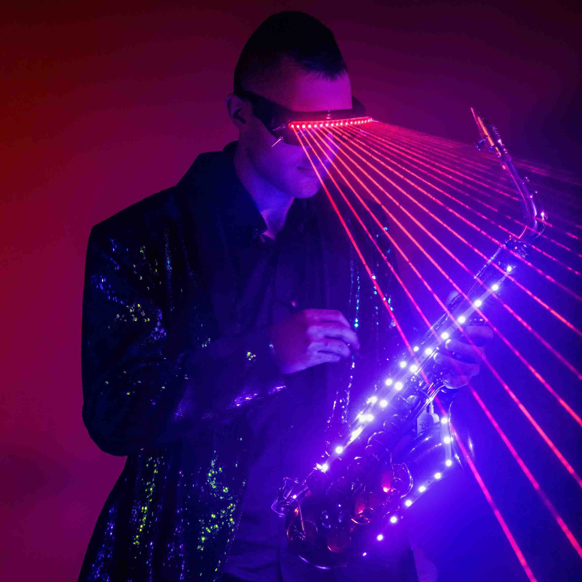 Performing anything from electronic dance tracks to slow ballads to classic oldies hits. Hire our LED Saxophonist for that extra wow- factor
