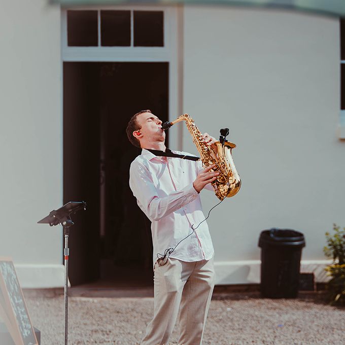 " I'm a true romantic and booked [him] to set the perfect scene to propose to my wife. I had chosen a beautiful park, and [he] arrived before us to set up his sound system, then magically appeared with his saxophone, surprising and delighting my wife-to-be. Luckily, she said 'yes' and I'm sure [he] played a big part in making this happen! "