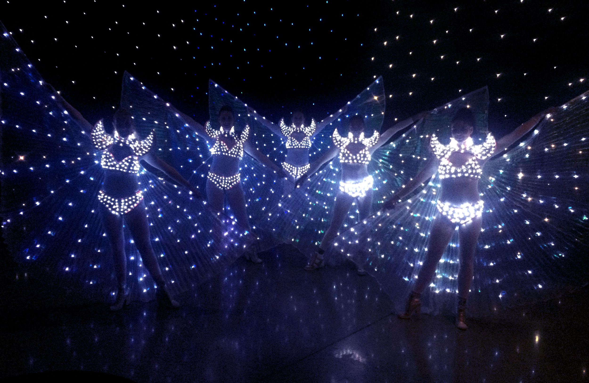 Combining high-energy dance routines and elegant organza costumes adorned with hundreds of twinkling LEDs this dance group will bring a wow-factor visual spectacle to your event. Their dazzling stage show is set to an atmospheric and uplifting soundtrack that will captivate audiences and take them on a journey through a kaleidoscope of swirling lights and pounding rhythms! Utterly hypnotic, this incredible dance show will not fail to impress.