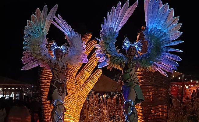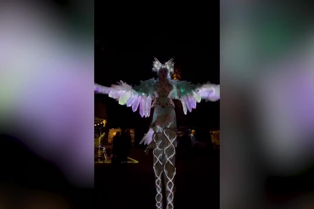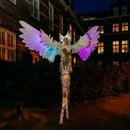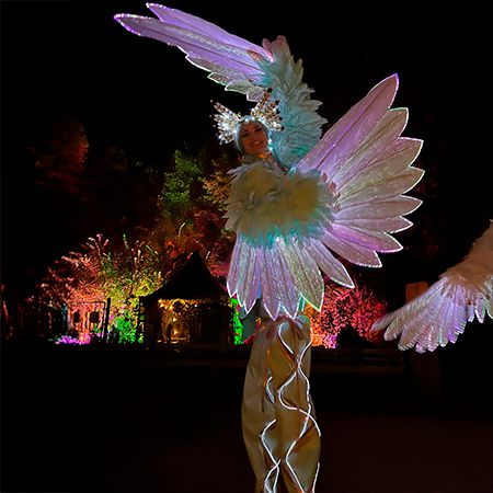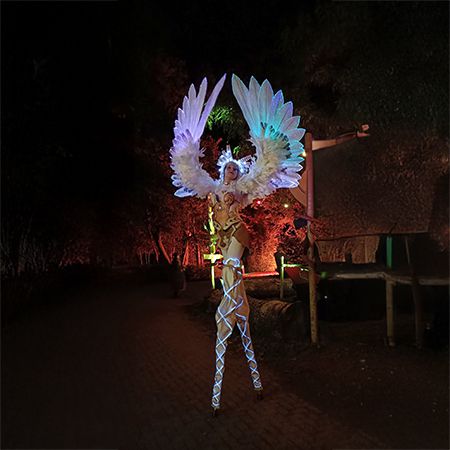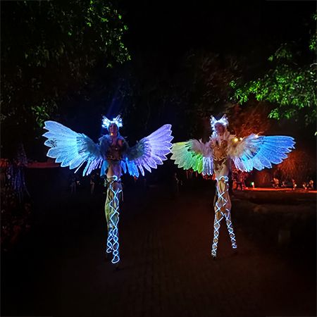 These stilt performers have stunning LED wings with dynamic colour-changing effects, adding a captivating visual spectacle to any evening event