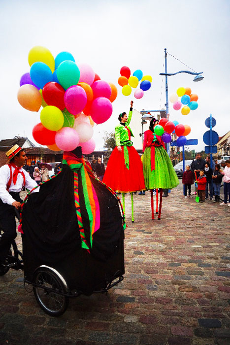 Orientated around balloons and colour, this act hands out balloons and is accompanied by a tricycle of balloons
