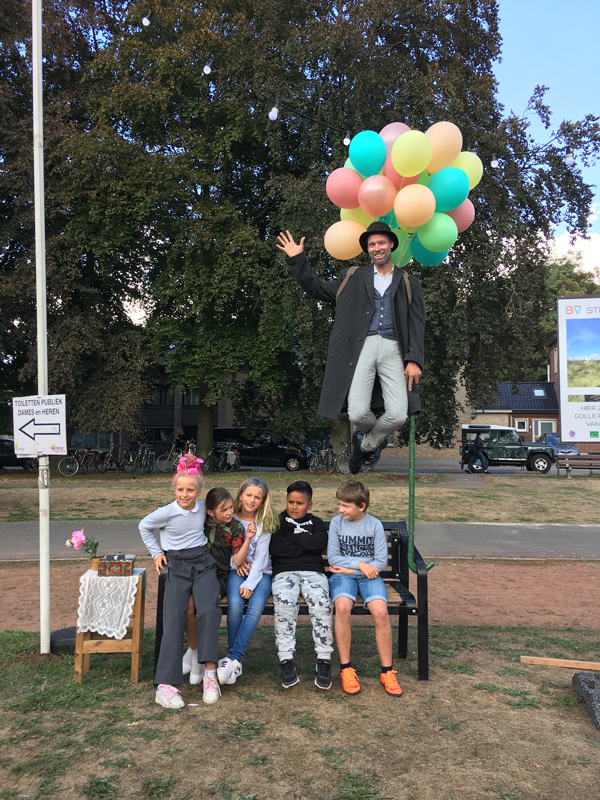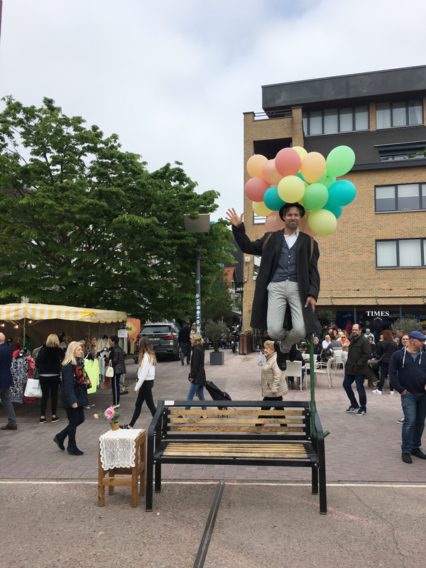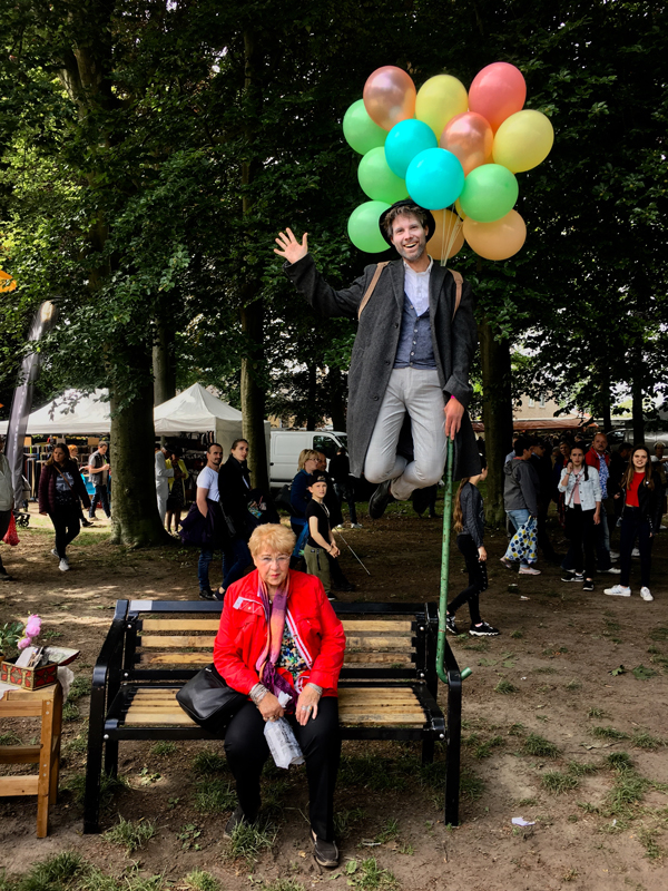 A loveable character, he will invite passersby and spectators to keep him company and even have a photo taken with him whilst he waits - he knows that he must look quite a spectacle. A highly interactive piece of static street theatre and a unique levitation performance, hire this levitation artist to charm your audience.
