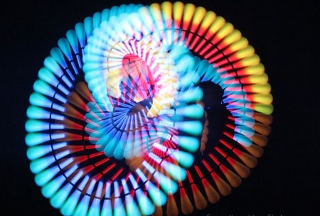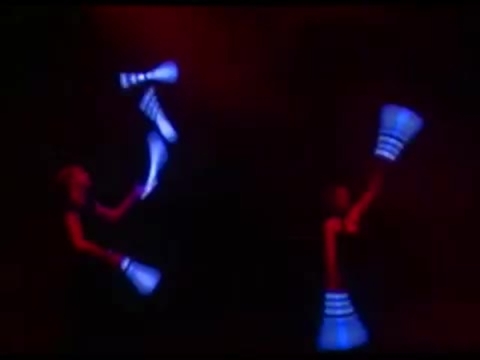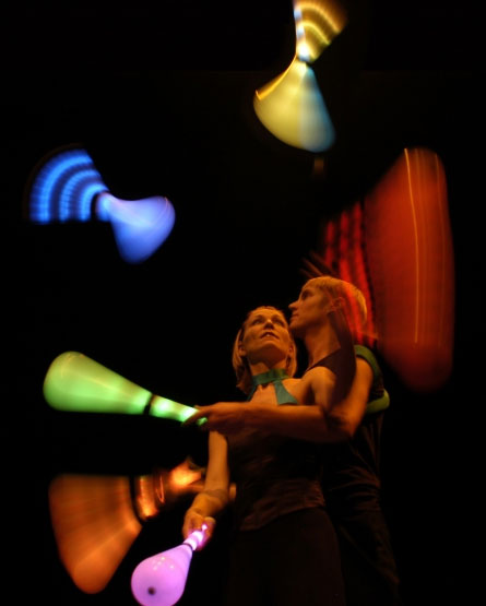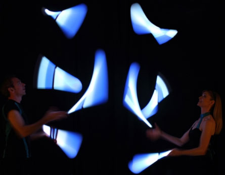 Choreographed juggling and movement create astonishing light graphics