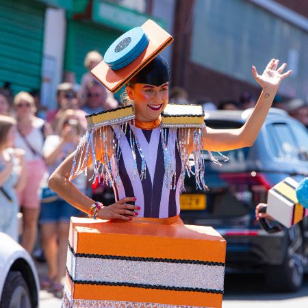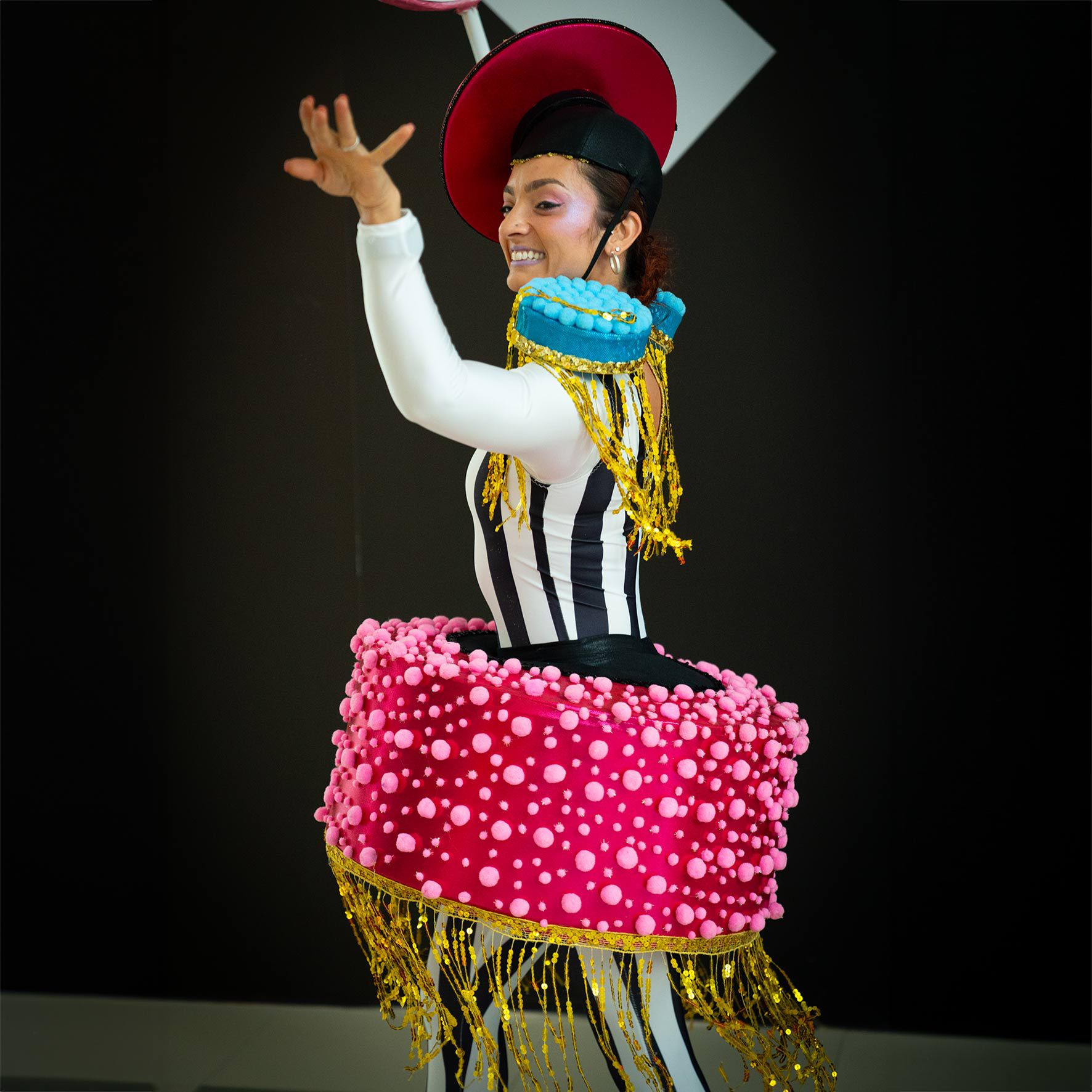 Their intricate liquorice-themed costumes are stunningly detailed, featuring various textures and vivid eye-catching colours