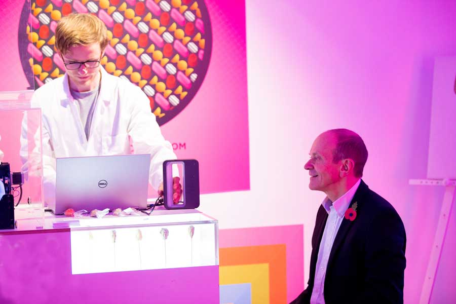 Turn your guests’ heads into chocolate lollipop edible gifts live in front of them and give them the opportunity to eat their own head. The attendees have a 3D scan of their head only taking up a minute of their time. The image is turned it into a cuttable file and carved onto a white or milk chocolate lollipop right before their eyes and provides an incredible interactive experience. The whole process takes around 6 minutes and they can print up to 10 an hour for a maximum of 8 hours. The chocolate lollipops get bagged up and have a 6-month shelf life from the day they were created. They can also include a customised label that will be available on the day and be dusted in gold too!