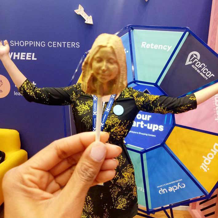 The high-tech live chocolate carver is here to take your event to new heights and offer your guests edible gifts of their faces on chocolate lollipops. A fascinating experience that engages your guests with an interactive experience like they’ve encountered before. They receive an edible gift with either their face, a pre-determined face or your logo which they can eat there and then take home as a souvenir. The chocolate carver is a fully flexible service that can be tailored to all client needs and suit a range of events from conferences, product launches, weddings, dinner parties or something a little quirkier.