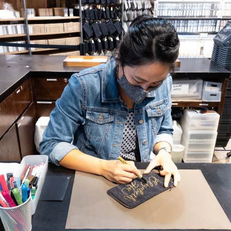 Able to decorate a variety of surfaces, our artist can write your guests' names or short messages on glass, cards, gift boxes, wine bottles and more