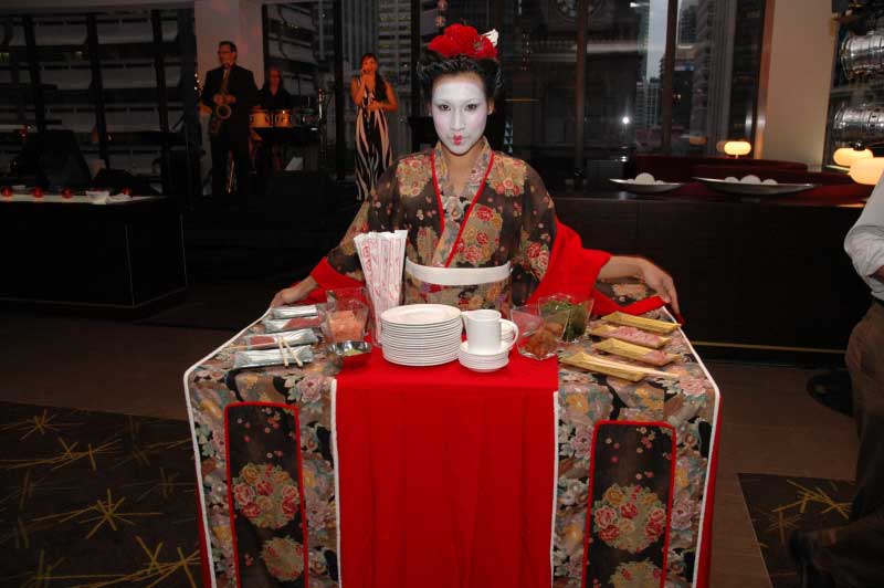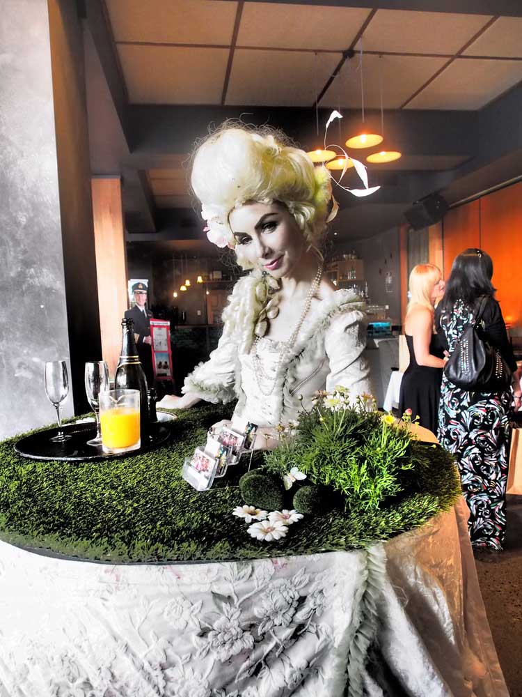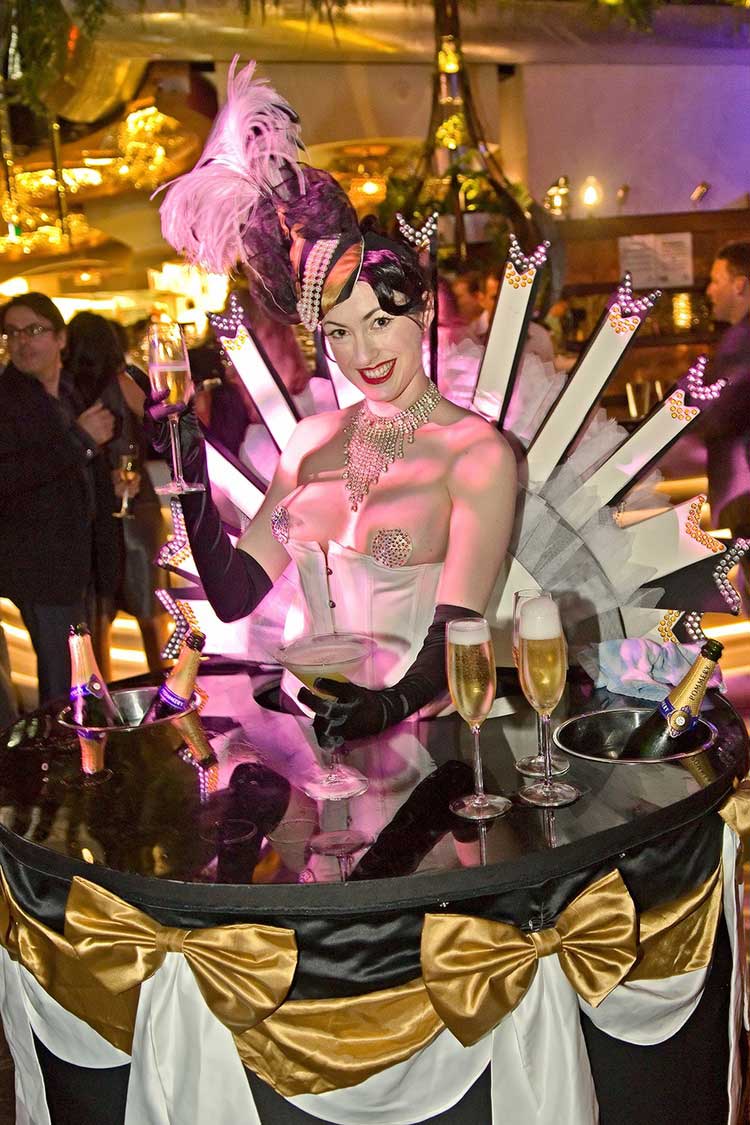 As well as having the perfect friendly and professional attitude our waitresses are masters of presentation, making their living table displays look absolutely stunning through their elegant costumes and real attention to detail. Our themed living tables look absolutely magnificent in a range of styles from Vegas showgirl to oriental and much more besides. Our roaming tables create an exciting and luxurious atmosphere as they move through your event, serving your guests in elegant and unforgettable style.