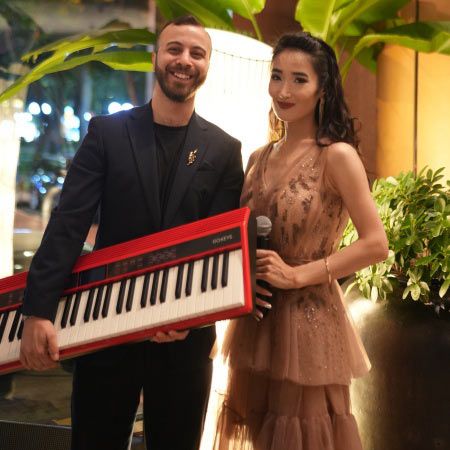 The duo is also available for separate bookings as an event pianist or a multilingual vocalist.