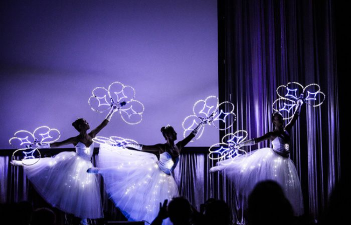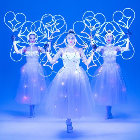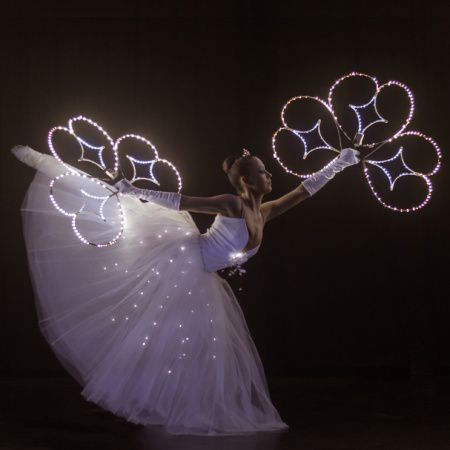 Only overshadowed by their gorgeous white tutus and their glowing LED white props, our elegant ballerinas will be the brightest stars of the night!