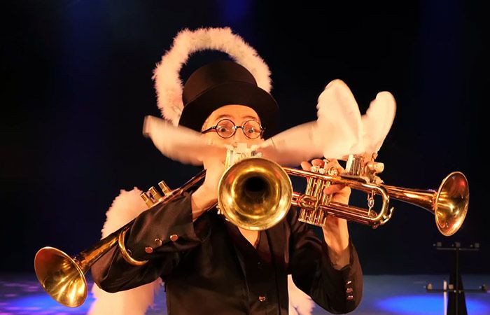 This novelty act includes up to four trumpets that fly around the stage, in a unique and magical display