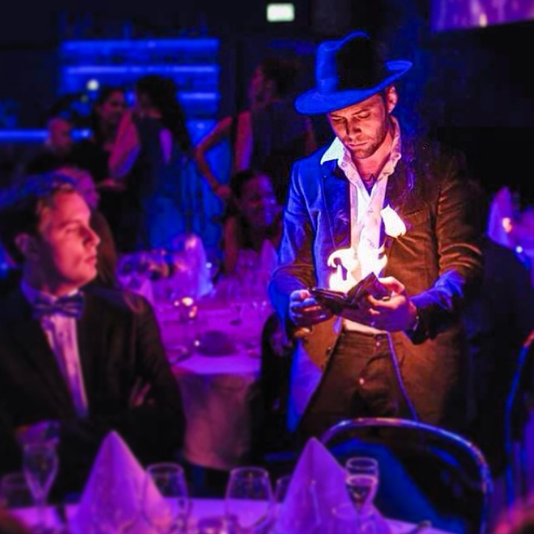 Magician Julien started his career as a teenager in the streets of Paris. He practiced his craft at the ”Forum des halles” in the heart of Paris amongst other street performers and circus artists.